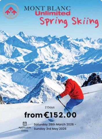Mont Blanc Unlimited Pass – The most complete choice of Chamonix ski passes. Includes the entire valley plus Aiguille du Midi, Tramway du Mont-Blanc, Mer de Glace train, and international access to Courmayeur (Italy) and Crans-Montana (Switzerland).
